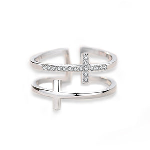 Double Cross Miniature Copper Inlaid Zircon Ring